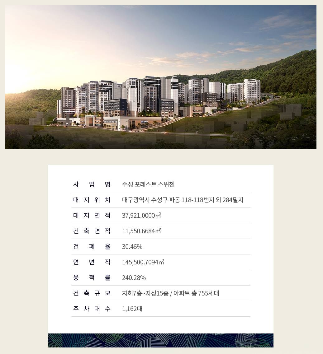 해운대의 푸른 바다를 품은 조망권 영구 조망으로 누리는 환상적인 오션 뷰 프리미엄 창을 열면 펼쳐지는 해운대 바다의 파노라마 뷰를 통해 일상의 가치를 높여주는 고품격 주거 환경을 선사합니다. KCC건설 스위첸의 브랜드 자부심 세련된 외관 디자인과 혁신적인 공간 설계의 완성 KCC건설의 기술력이 집약된 스위첸 브랜드만의 미학적 디자인과 주거 최적화 설계로 완성된 랜드마크입니다. 해운대 중심 인프라의 완벽한 결합 쇼핑, 문화, 레저가 집중된 해운대 중심 생활권 해운대 해수욕장은 물론 신세계백화점, 벡스코 등 부산 최고의 생활 및 문화 인프라를 가깝게 누리는 최적의 입지입니다. 희소가치 높은 하이엔드 주거 공간 품격 있는 라이프스타일을 제안하는 감각적인 인테리어 최고급 마감재와 세심한 설계로 구성된 실내 공간은 입주민의 자부심을 상징하는 프라이빗한 휴식처가 됩니다. 사통팔달의 편리한 도심 교통망 부산 전역으로 빠르게 연결되는 쾌속 교통의 허브 도시철도와 인접한 교통 요건을 갖추어 부산 주요 도심으로의 접근성이 뛰어나며 출퇴근이 용이한 환경을 자랑합니다. 수준 높은 입주민 전용 커뮤니티 일상의 활력을 더하는 품격 있는 단지 내 시설 피트니스 클럽, 라운지 등 입주민의 품격을 고려한 차별화된 커뮤니티 공간에서 여유로운 삶을 즐길 수 있습니다. 미래 가치가 기대되는 해운대 핵심지 관광특구와 연계된 지속적인 가치 상승의 중심 글로벌 관광 도시 해운대의 지속적인 발전과 함께 자산 가치의 동반 상승을 기대할 수 있는 미래형 주거지입니다.